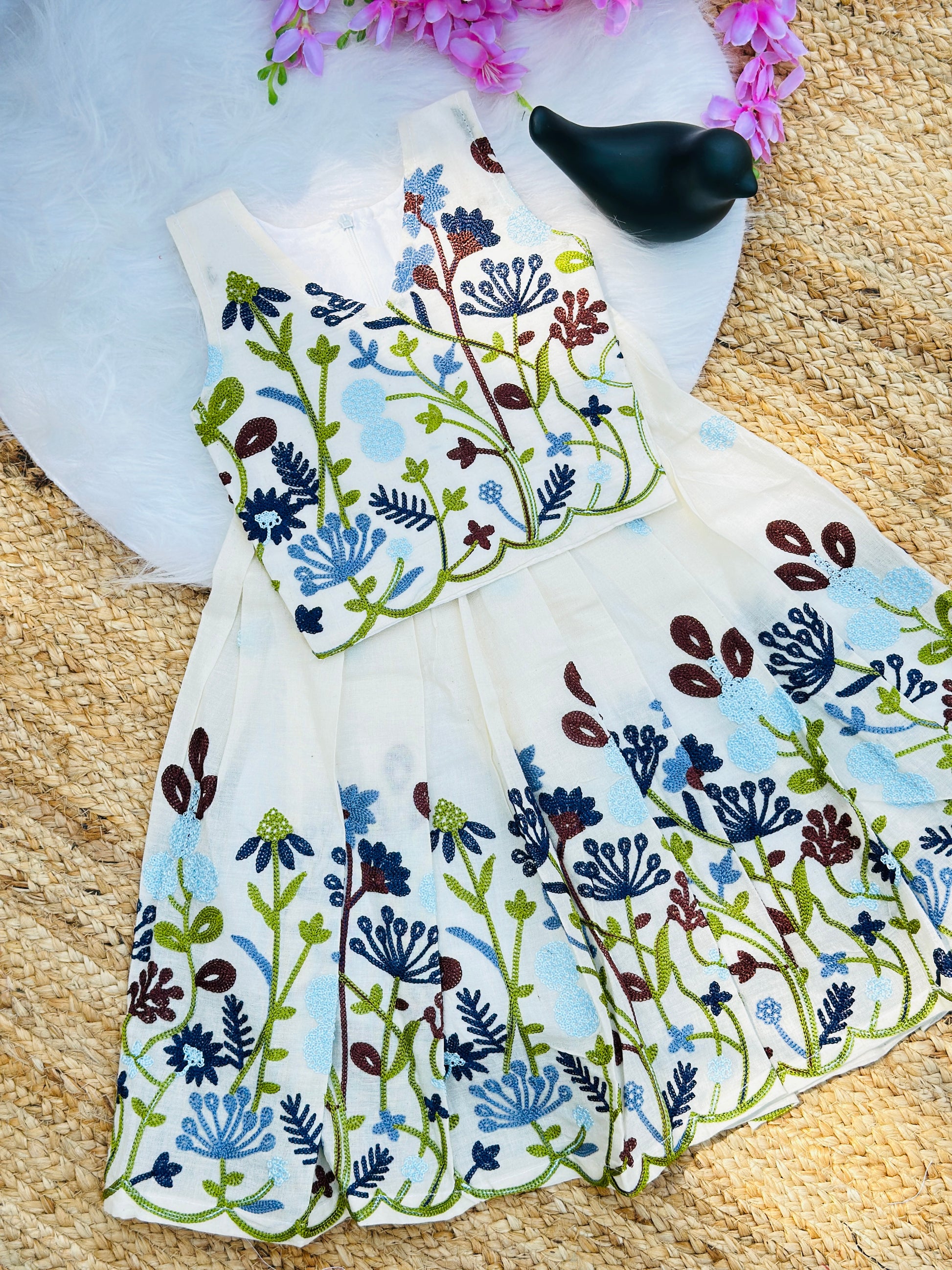 Blossom Pure Cotton Fabric Embroidery work Embroidery Lahenga Choli