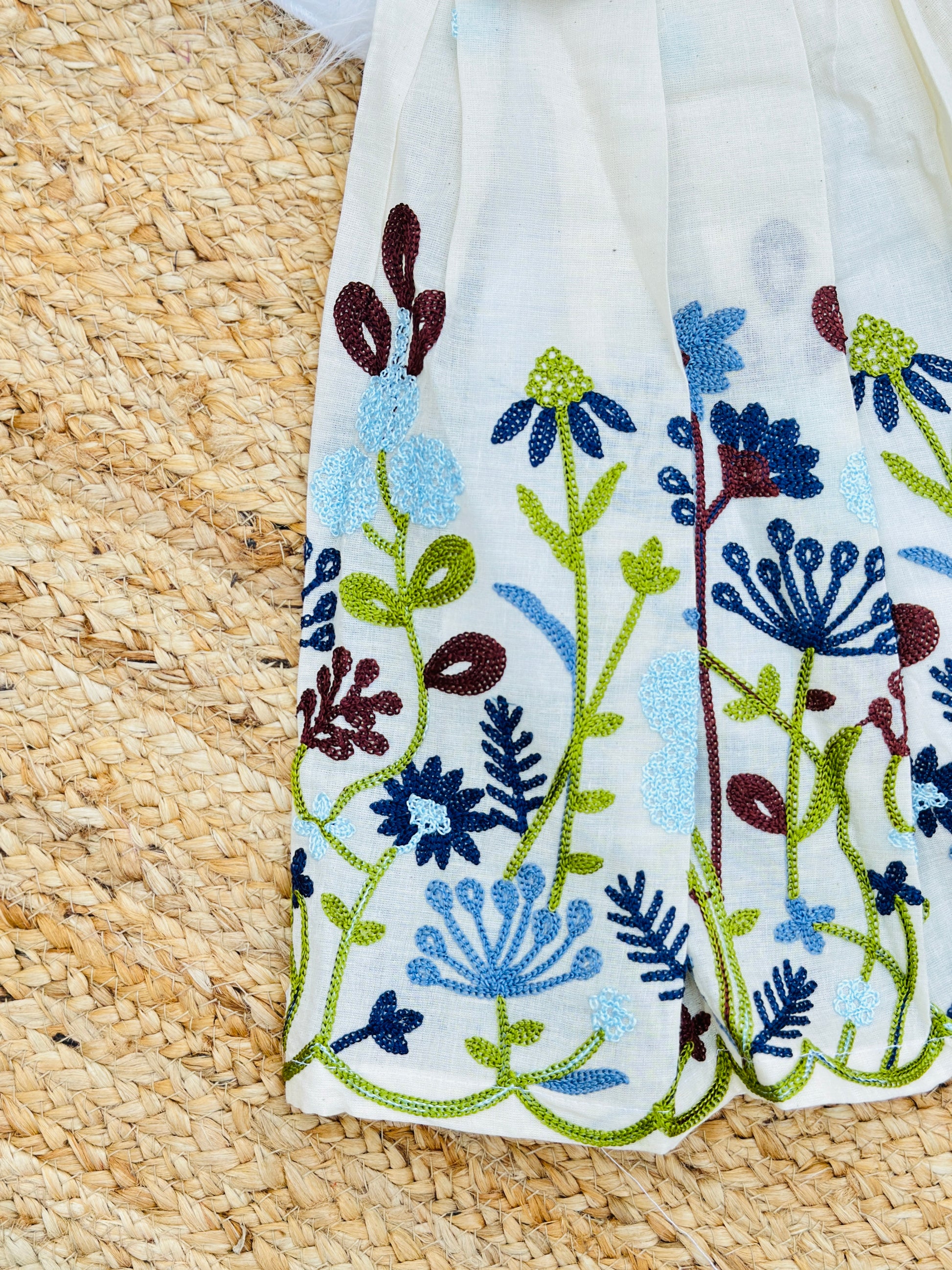 - Flamingo Embroidery Work on Khadi Cotton Fabric Kids Frock
